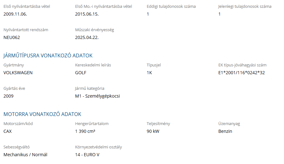 Elhagyott, Golf lejárt műszakival, látszólag hónapok/évek óta nem nyúltak hozzá, foglalja a helyet.