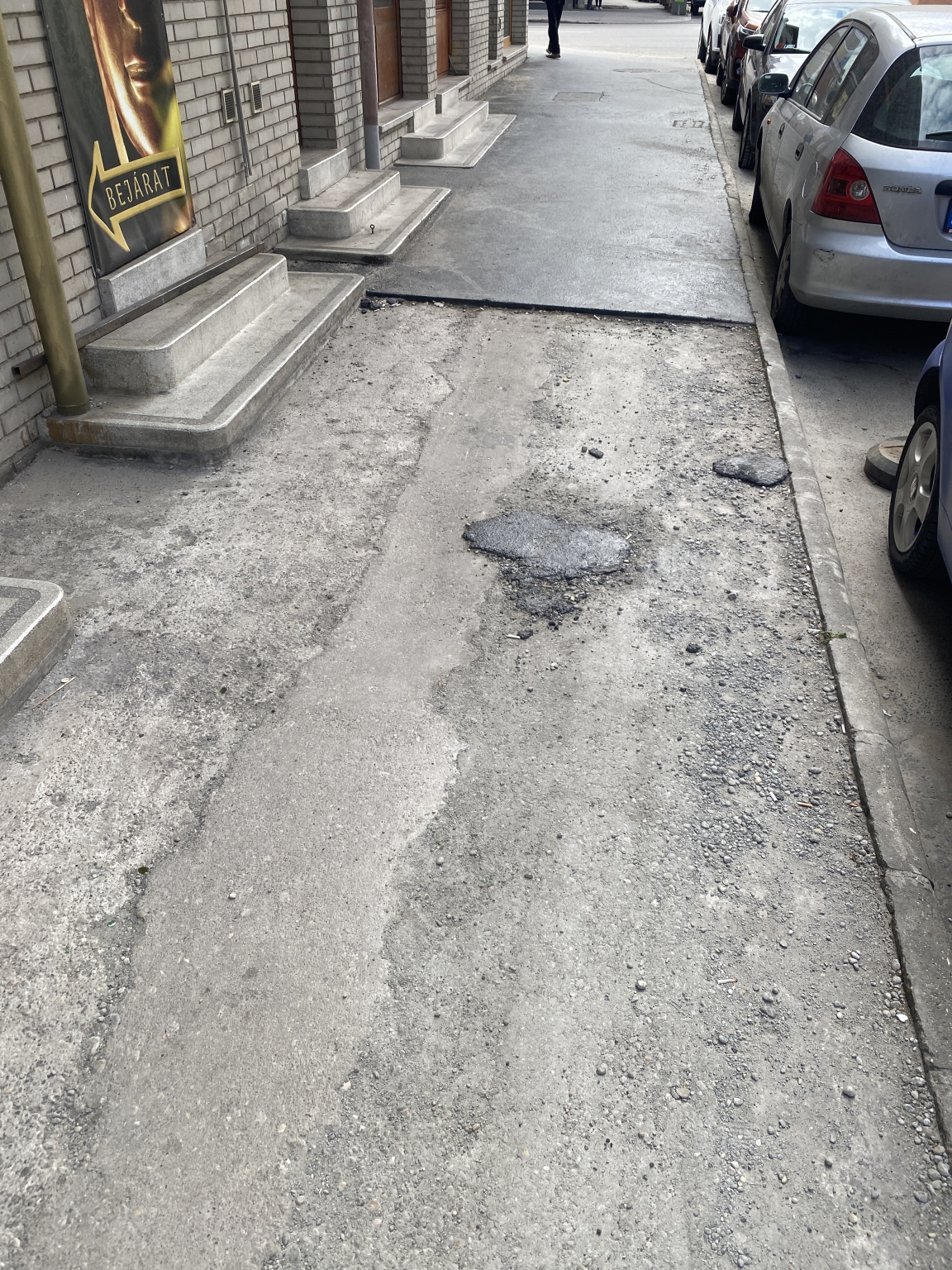 A 4. kerületi Lebstück Mária utcában egy korábbi elektromos kábel fektetési munka miatt felbontották a járda aszfaltburkolatát. A helyreállítást nagy részben megcsinálták, azonban a rövid szakaszon több, mint egy hónapja elfeledkeztek a befejezésről. Kérem a munka mielőbbi elvégzését.