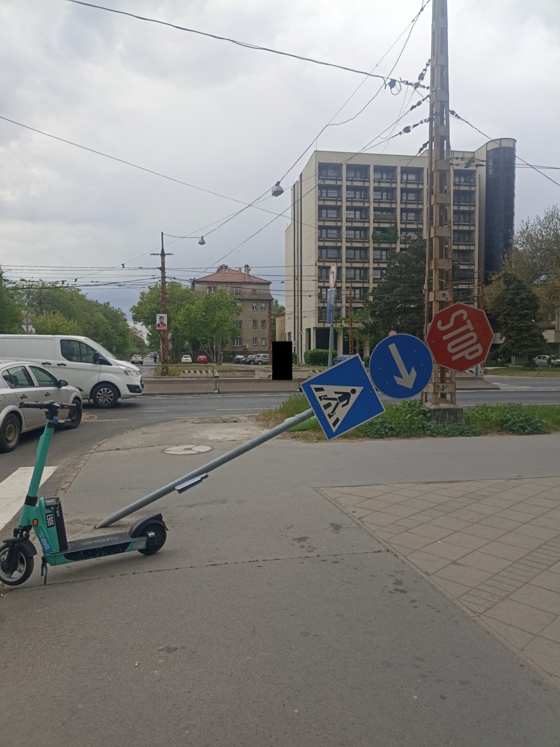 14.ker. Mexikói út-Thököly út sarkán (Törökőr felöli oldalon) álló közlekedési tábla ki van döntve. Sztem nekimentek, talán baleset volt.