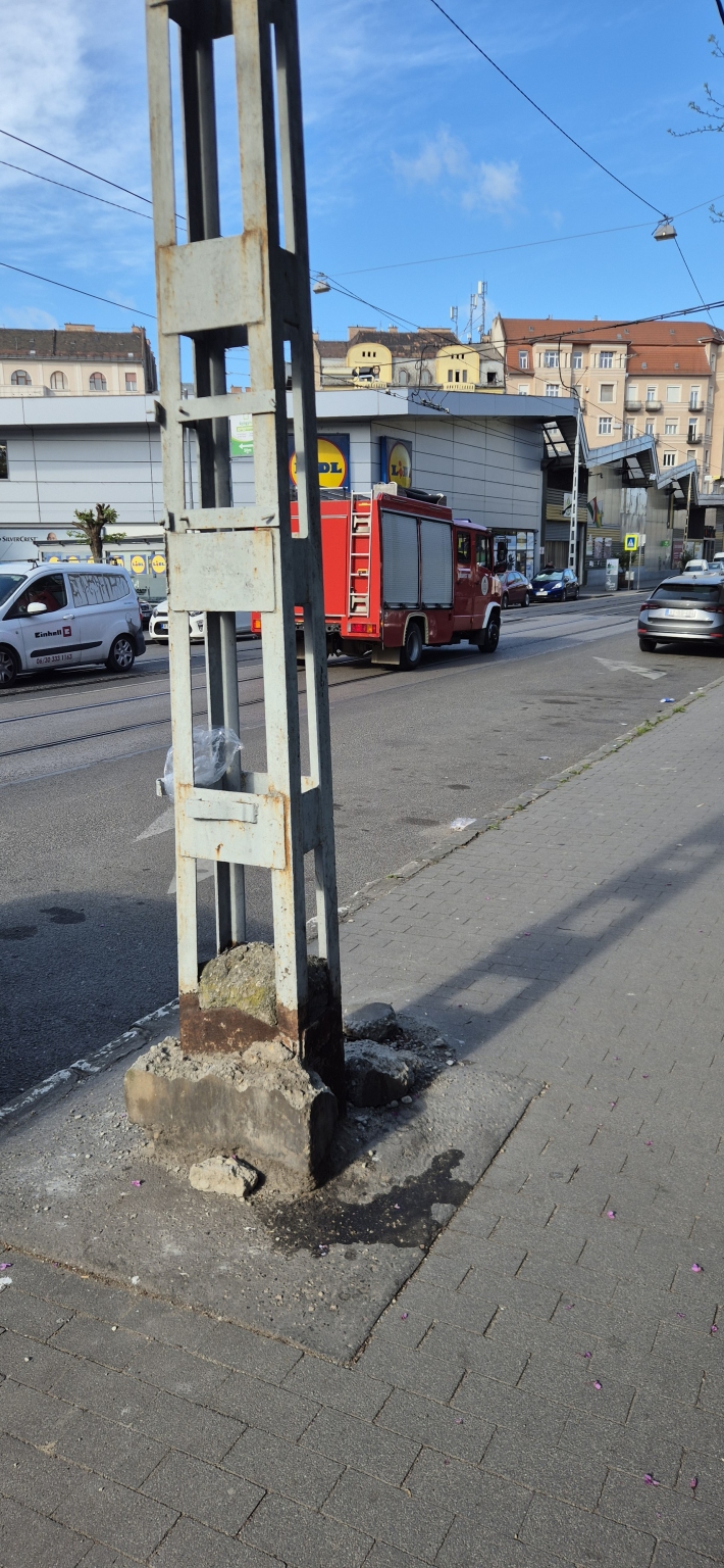 Lassan hetek, de lehet hogy hónapok óta ez az állapot fogad. Kérem szépen az illetékeseket hogy legyenek szívesek javítani az oszlop alját, vagy ha azt nem is szükséges akkor a szétbomlott részt vigyék el. Köszönöm
