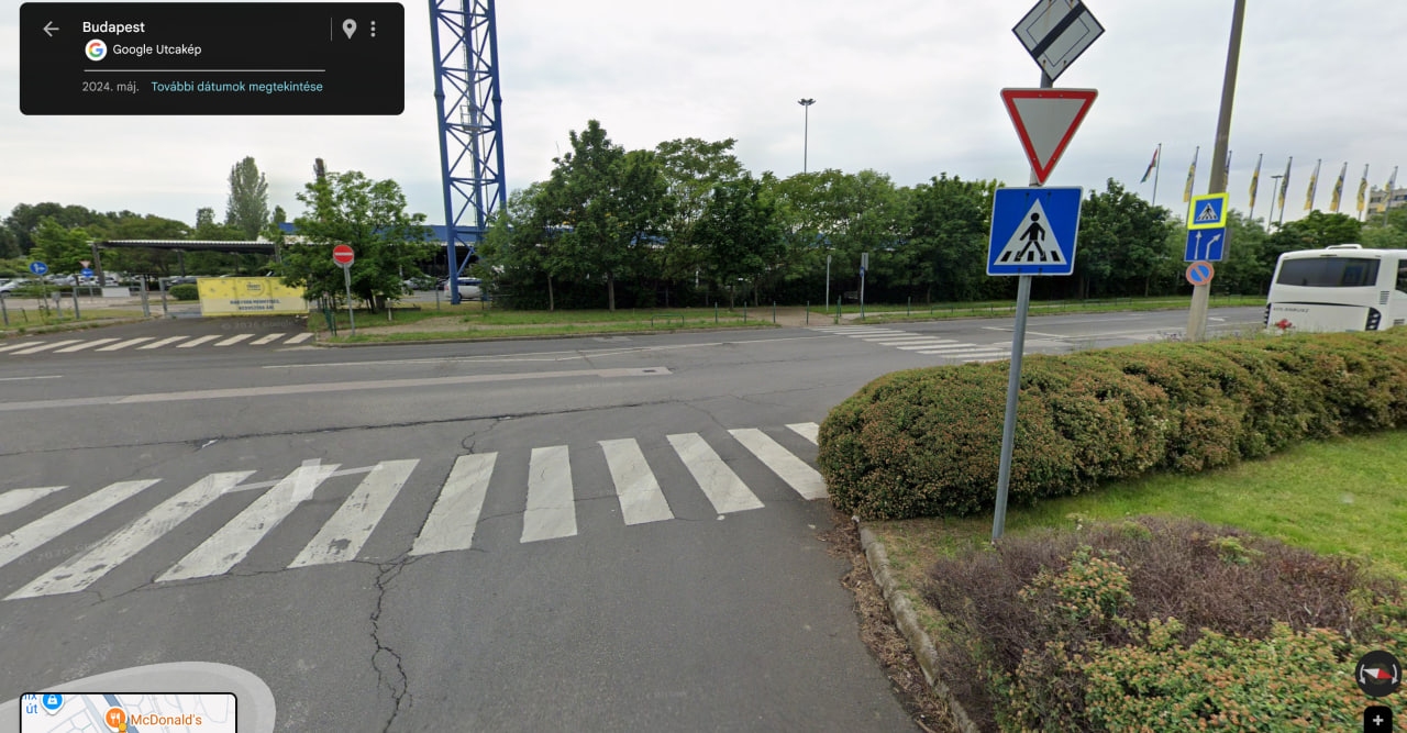 Nincs friss fotóm, a google-ről töltöttem le egy régebbi képet. A nehezen belátható kereszteződés, és a 70-es tempóról beérkező autók miatt fokozottan veszélyes a gyalogosokra nézve a helyzet.