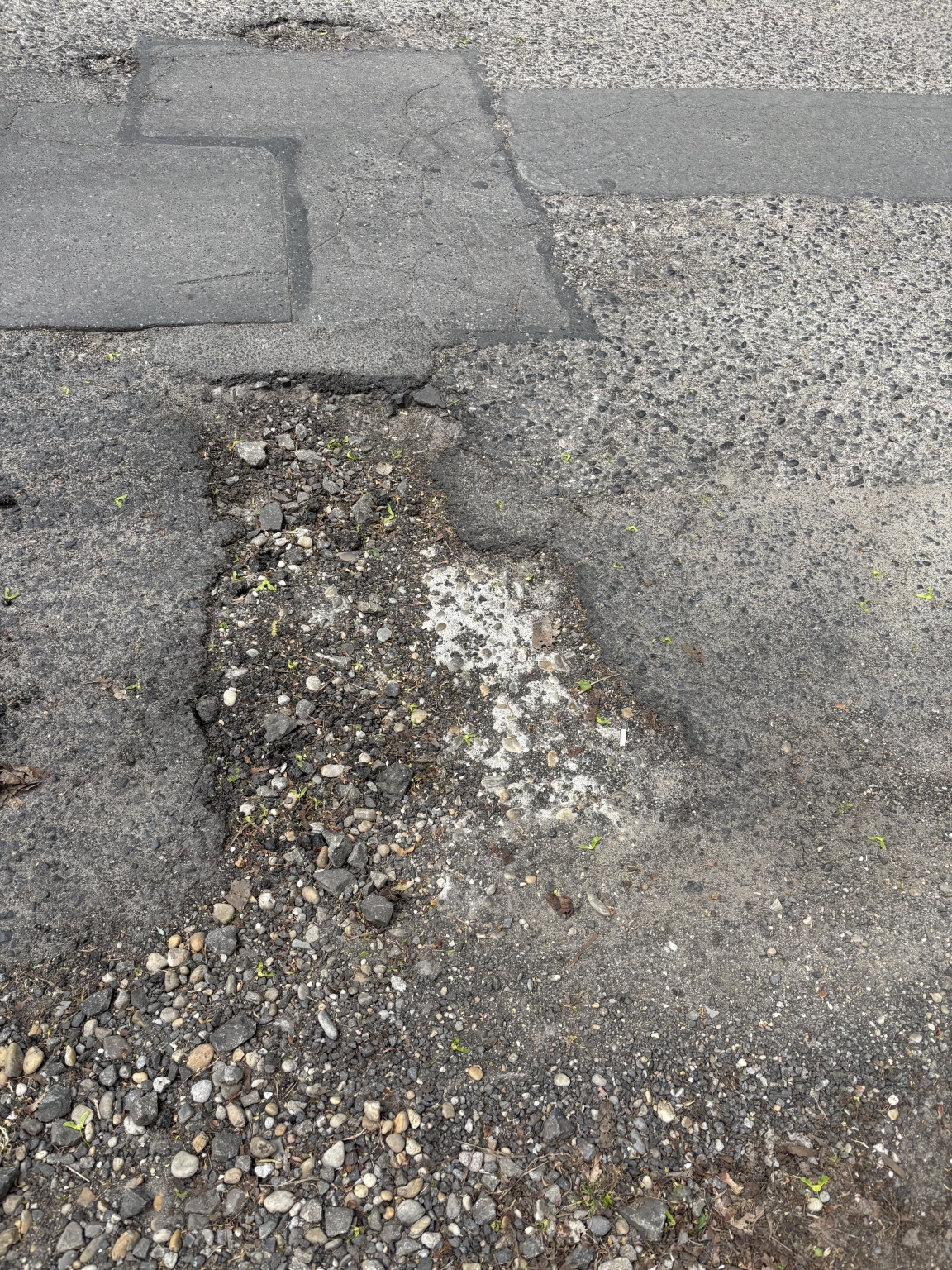 A XIX. kerület Thököly utca 3. szám előtt található a képen látható hatalmas kátyú.