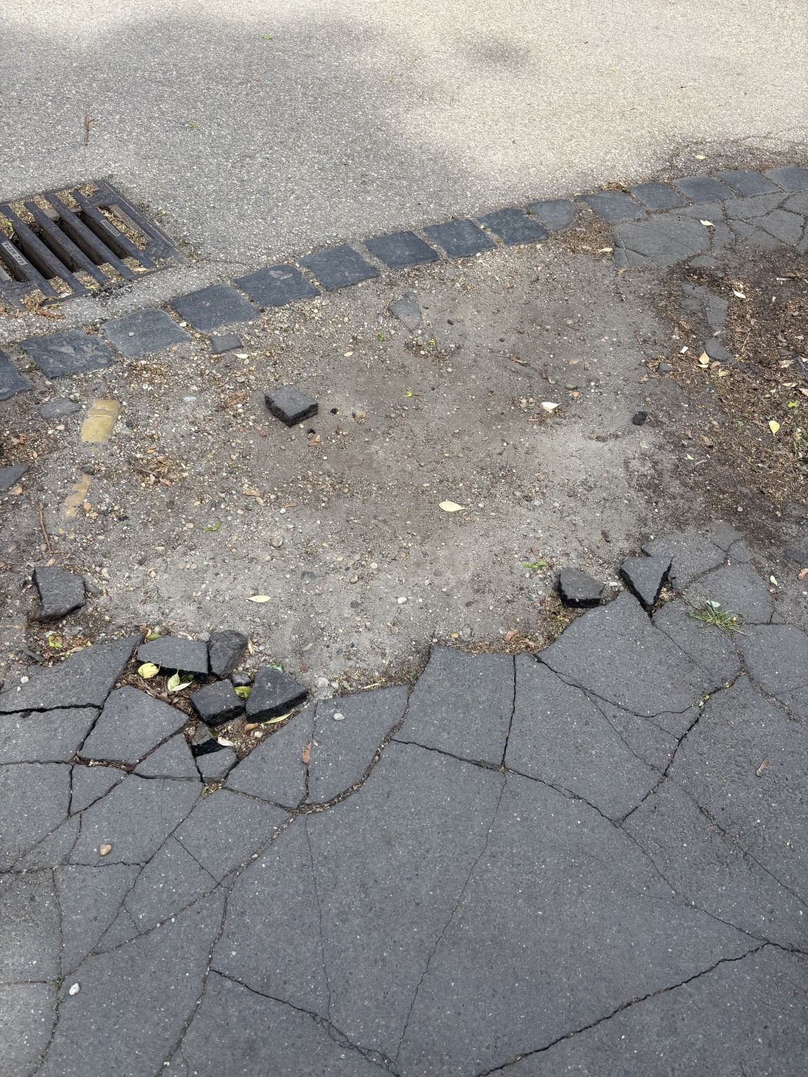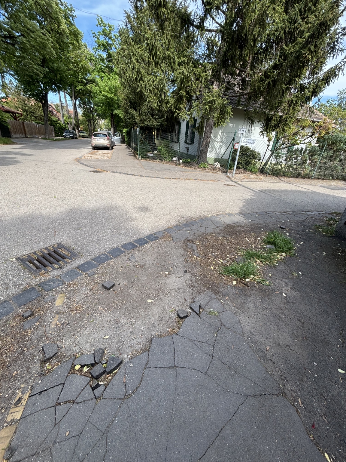 A XIX. kerület Előd utca 10. szám előtt a járda a télen szétfagyott.