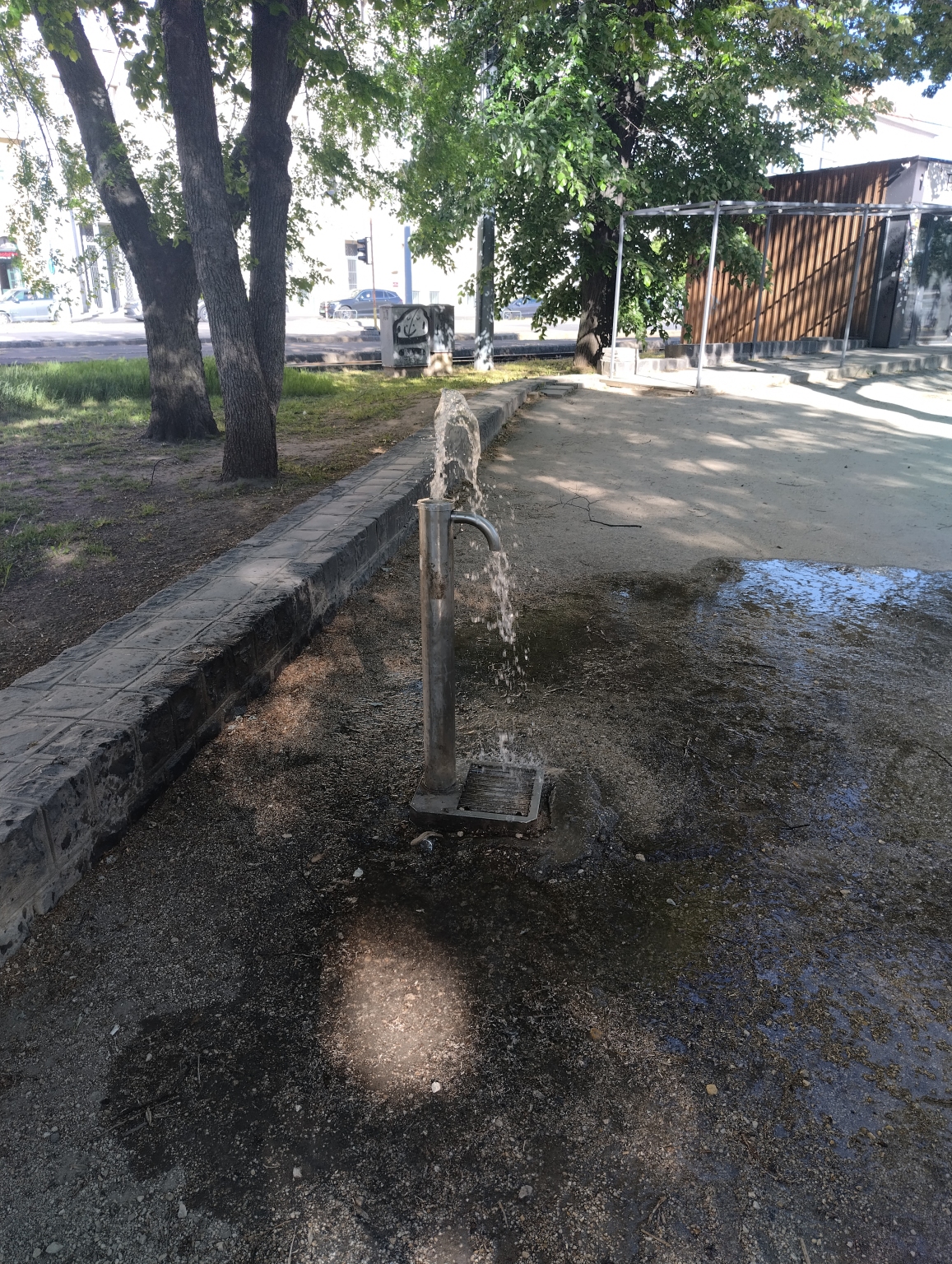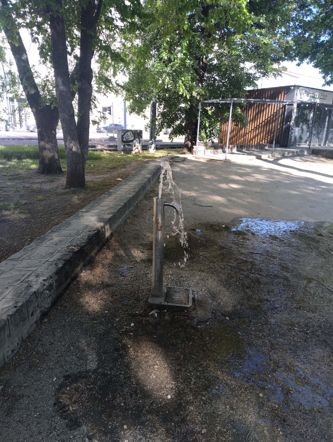 A nehru parton a régi pavilon bár mellett lévő ivókút tetején folyamatosan ömlik a víz