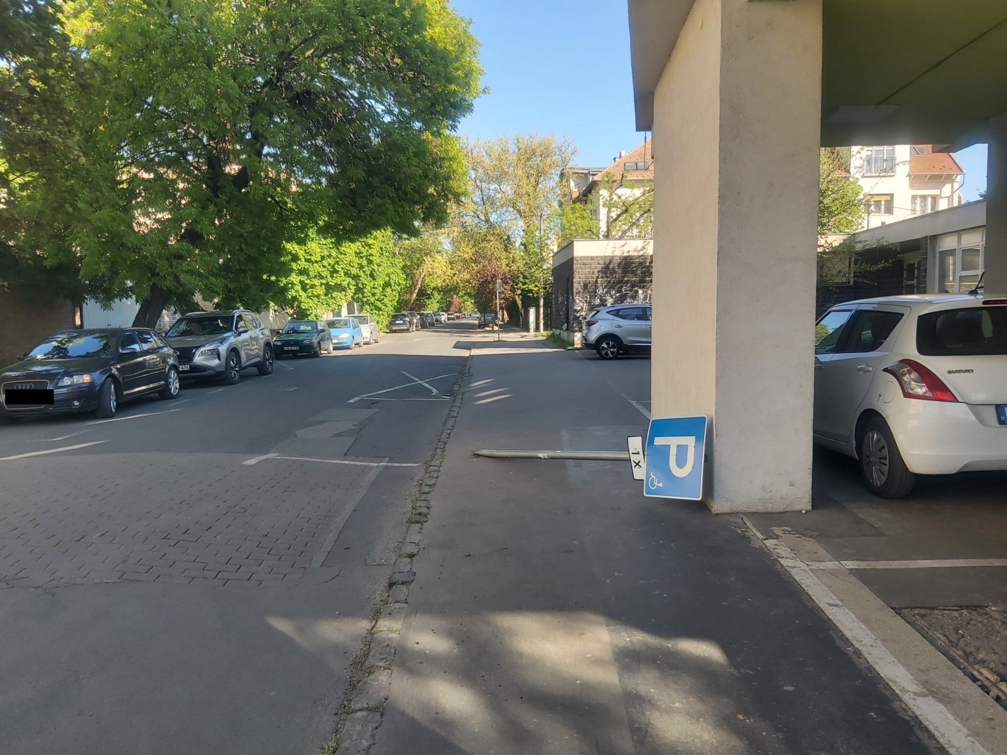 A Lőcsei út végén kidőlt egy tábla, ami a járdán fekszik.