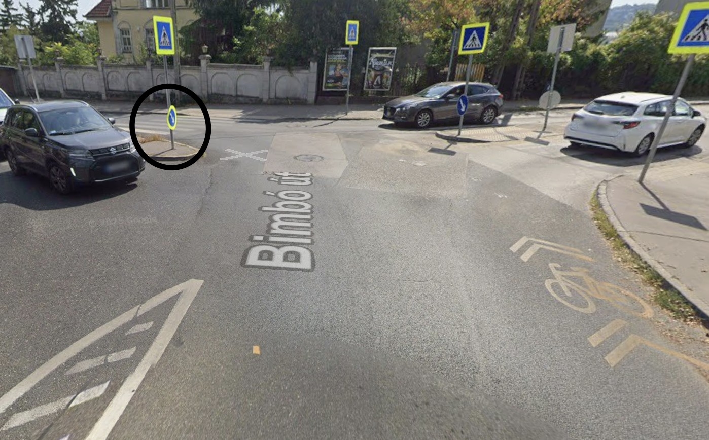 A szellemek ismét elfordították kb. 90 fokkal az Alsó törökvész úton a Bimbó úthoz érkezőknek szóló, járdasziget kikerülési irányát jelző táblát. Kérem, fordítsák vissza, mert így a Bimbó útról balra kanyarodókat is megzavarhatja.