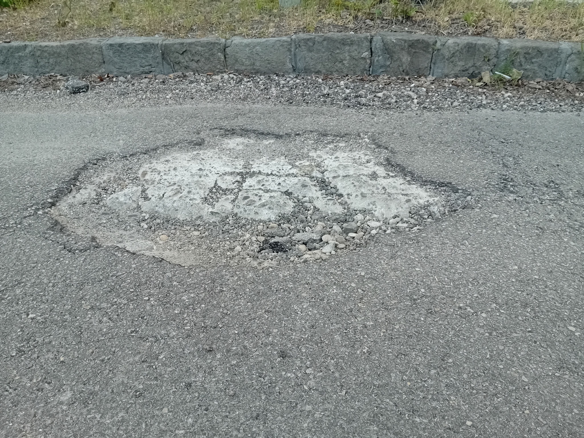 Kátyú az úttesten