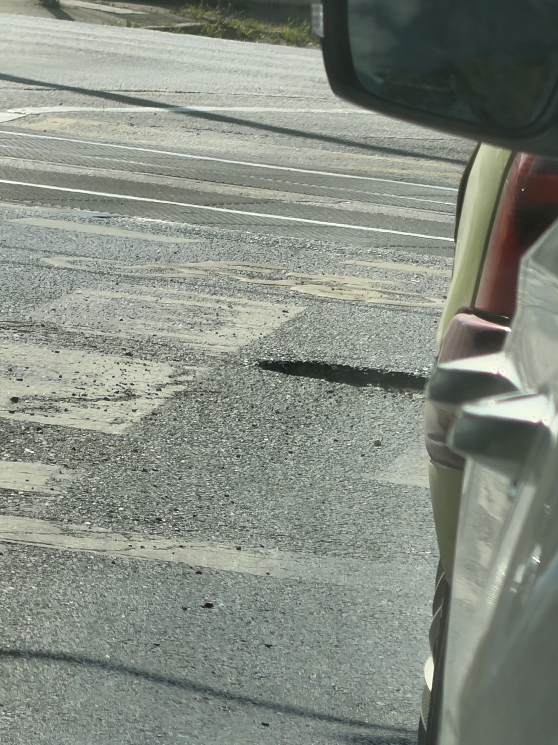 Kátyú a HÉV átjárónál