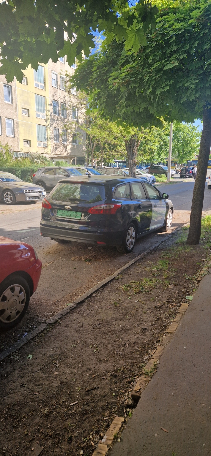 A Jann Ferenc utca elején (5. Hsz) előtt a párosban, az úttesten egy forgalomból kivont autó foglalja el az úttesten a parkolóhelyet.