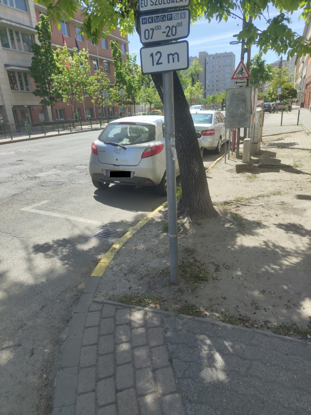 A Pap Károly - Csongor utca sarkán várakozni tilos tábla mellett megállni tilos szegélyfestés került fel.