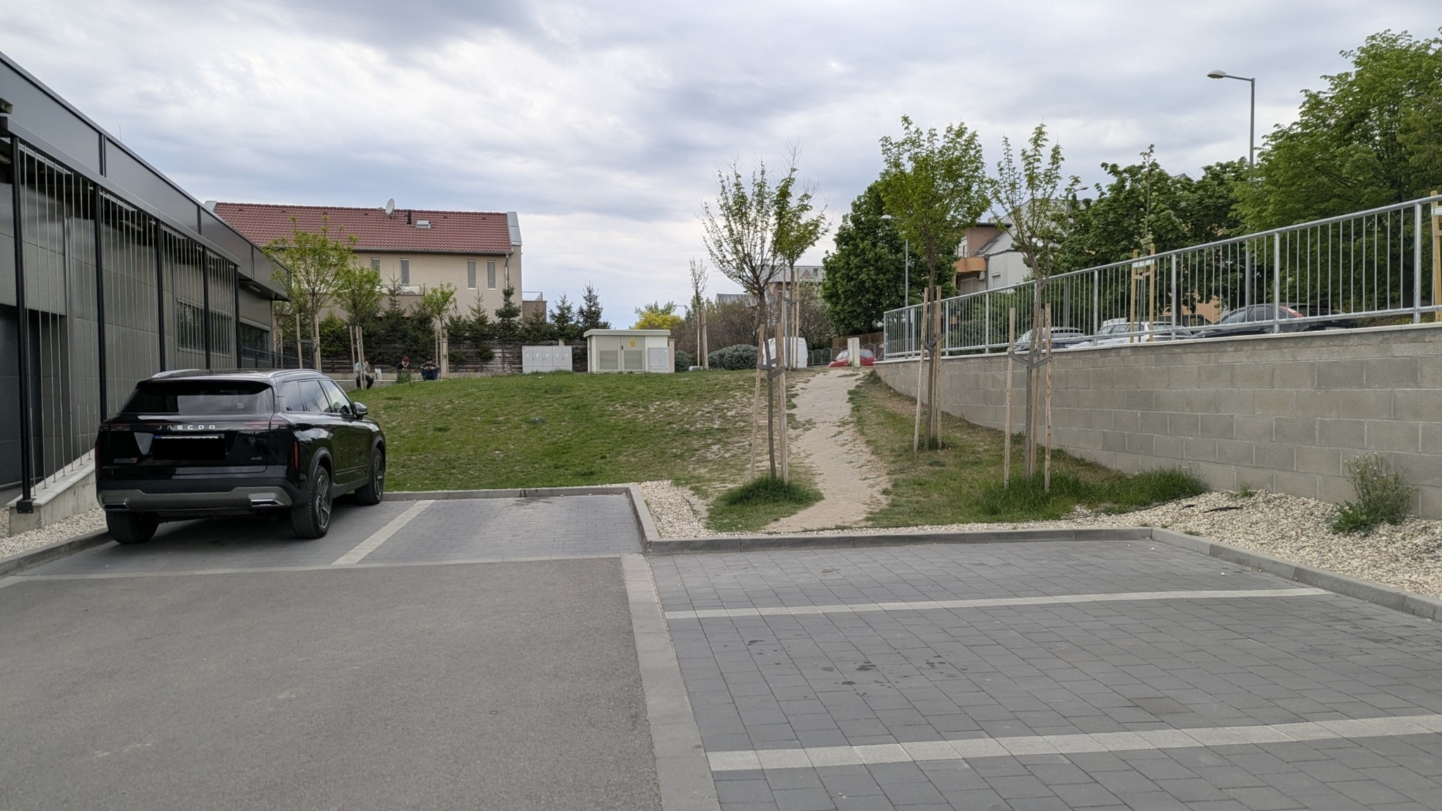Kérem, legyenek szívesek a kitaposott ösvényt leburkolni, mert látszólag nagy igény van a gyalogosan érkező vásárlók részéről, hogy ebből az irányból meg tudják közelíteni a boltot.