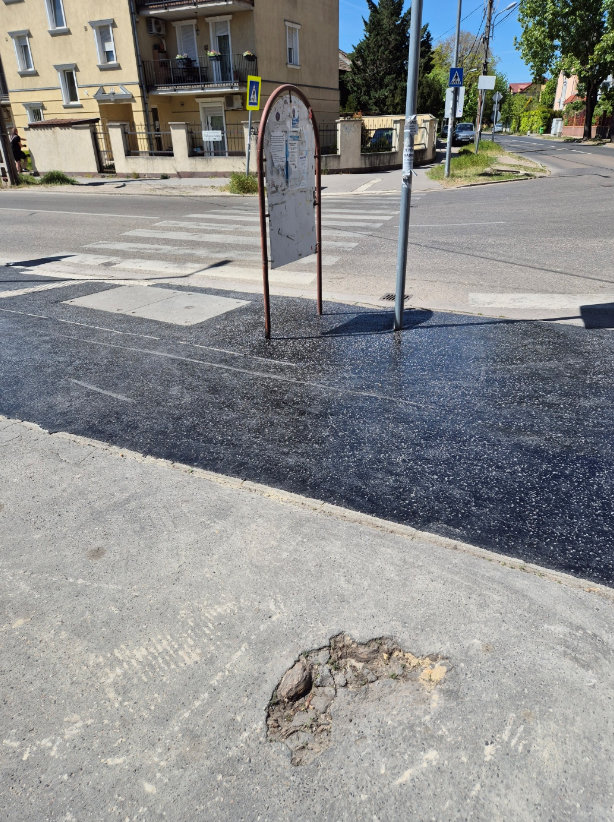Néhány napja fejeződött be a Telepes utca / Öv utca sarkán található gyalogátkelő felújítása (modern led-es közterület megvilágítást kapott csupán), és a mai napon arra járva egy kisebb és egy nagyobb megsüllyedt részt láttam a felújított felület szomszédságában a járdán. Ezek a sérülések jó eséllyel a felújítás során keletkeztek, mert előtte nem voltak jelen.