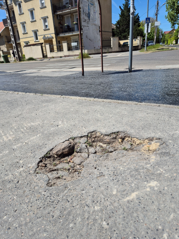A nagyobbik "járda kátyút" veszélyesnek ítéltem meg, ezért szeretném a javítását, kb 8-10 centi mély.