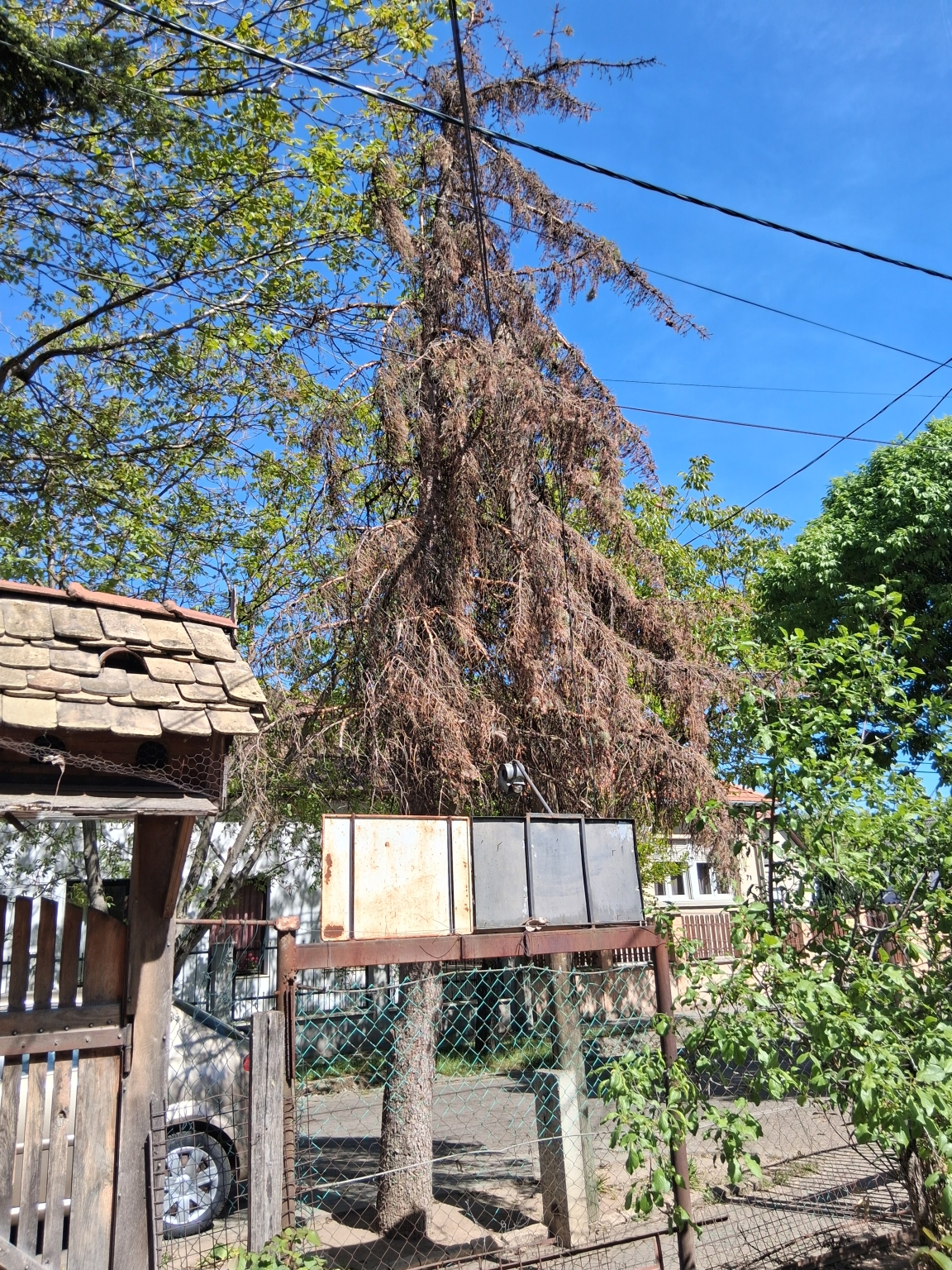 Az akácfa utca 62 szám előtt hullatja tűleveleit már egy jó ideje szerencsétlenek fenyő, ebben kérnék segítséget