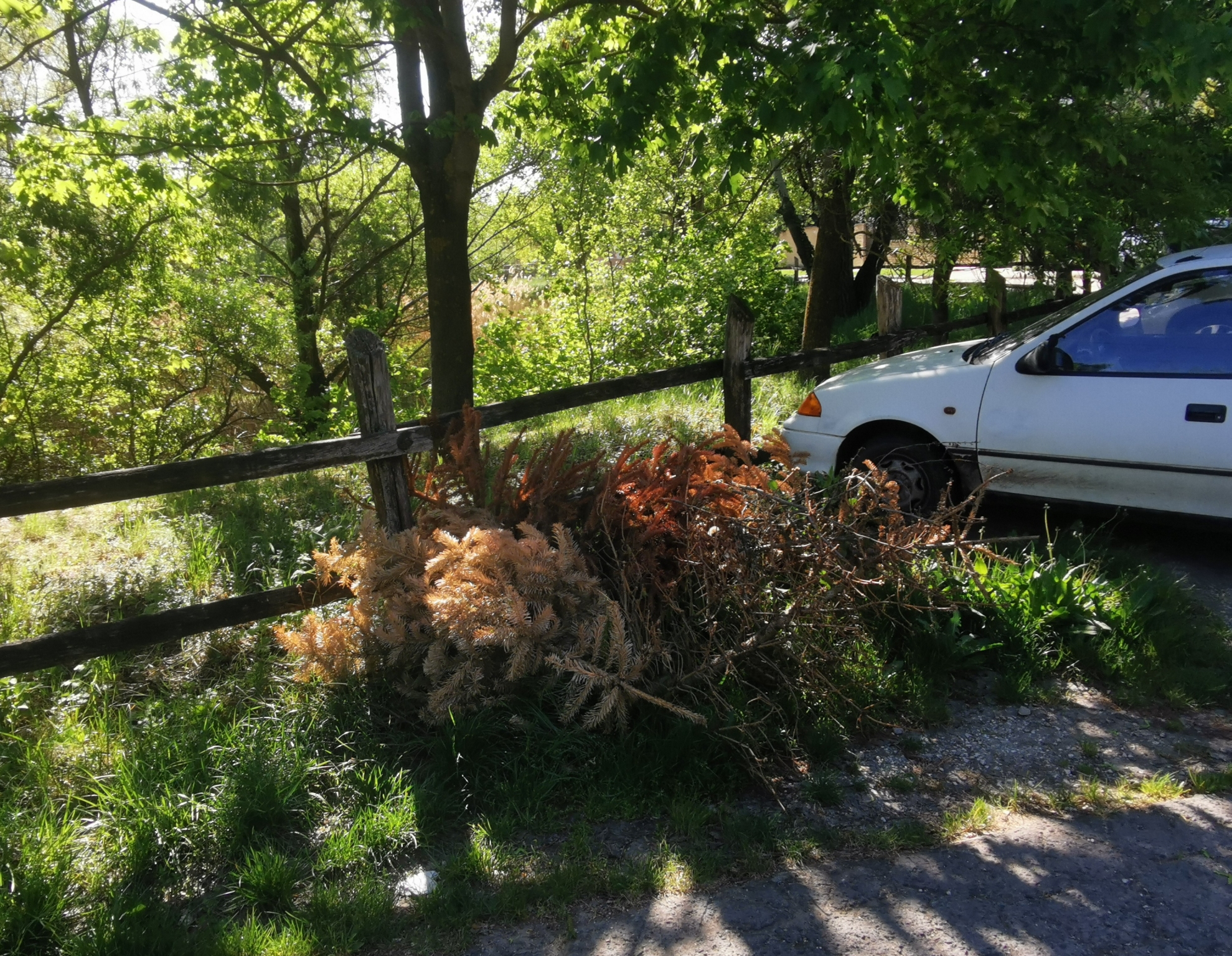 Kiszáradt karácsonyfák az út mentén