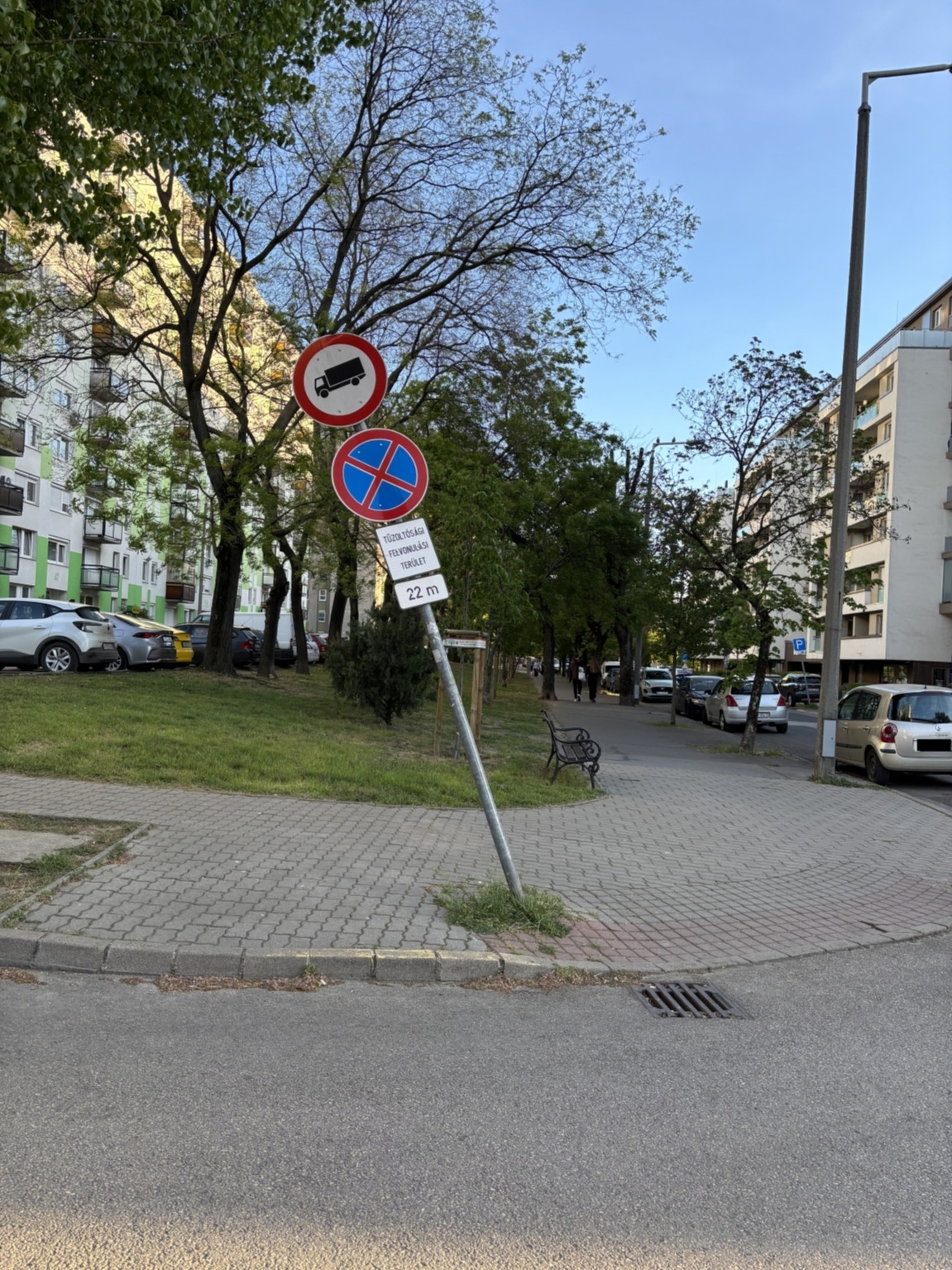 Budapest XIII. kerület, Madarász Viktor és a Berettyó utca sarkon található oszlopot félig kidöntötték.