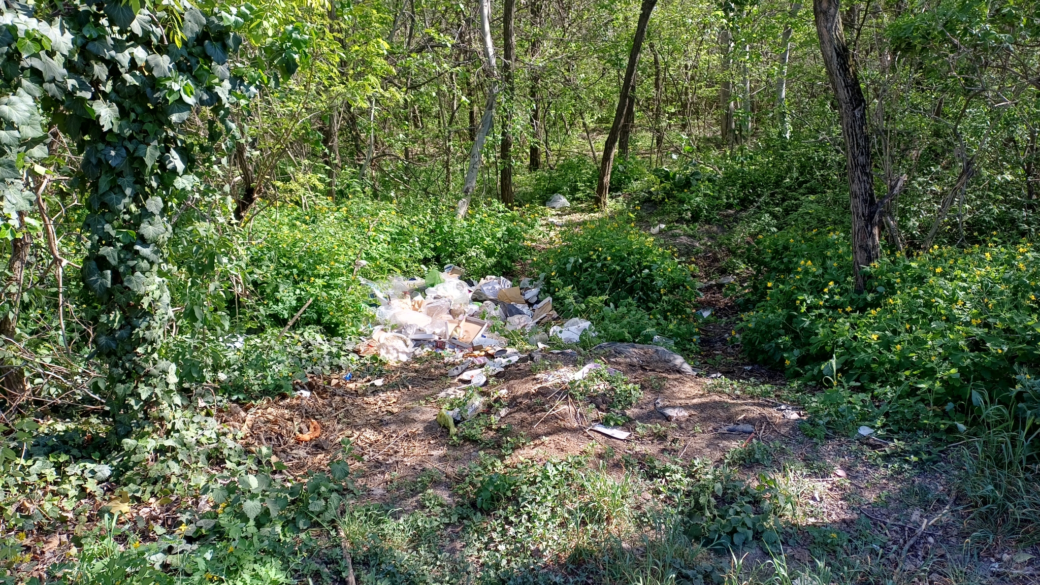 A kertészetnél, a Bolgárföld utcával szemben az erdőben szemetet raktak le.