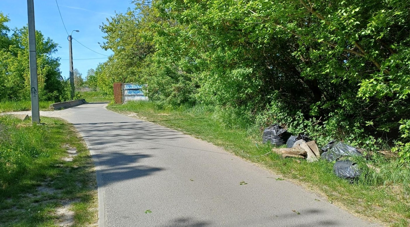 A kerékpárút elején szemétlerakás, közvetlenül a szennyvíztisztító mellett.