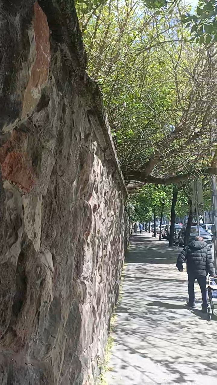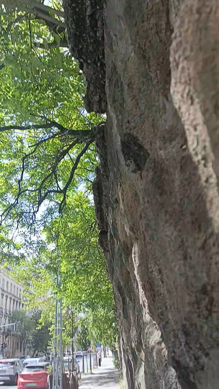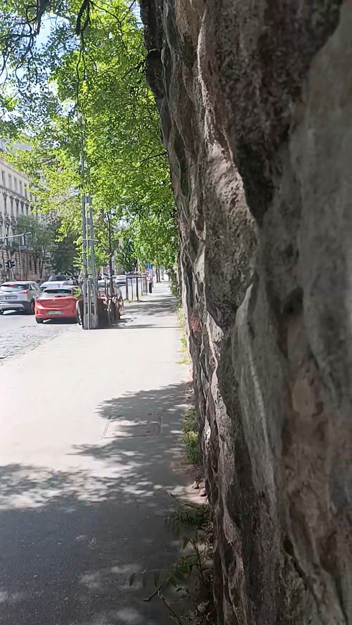 Budapest, Podmaniczky utca. A MÁV oldalán lévő járda melletti támfal, Vörösmarty és Csengery utca közötti szakaszon életveszélyes állapotban van.