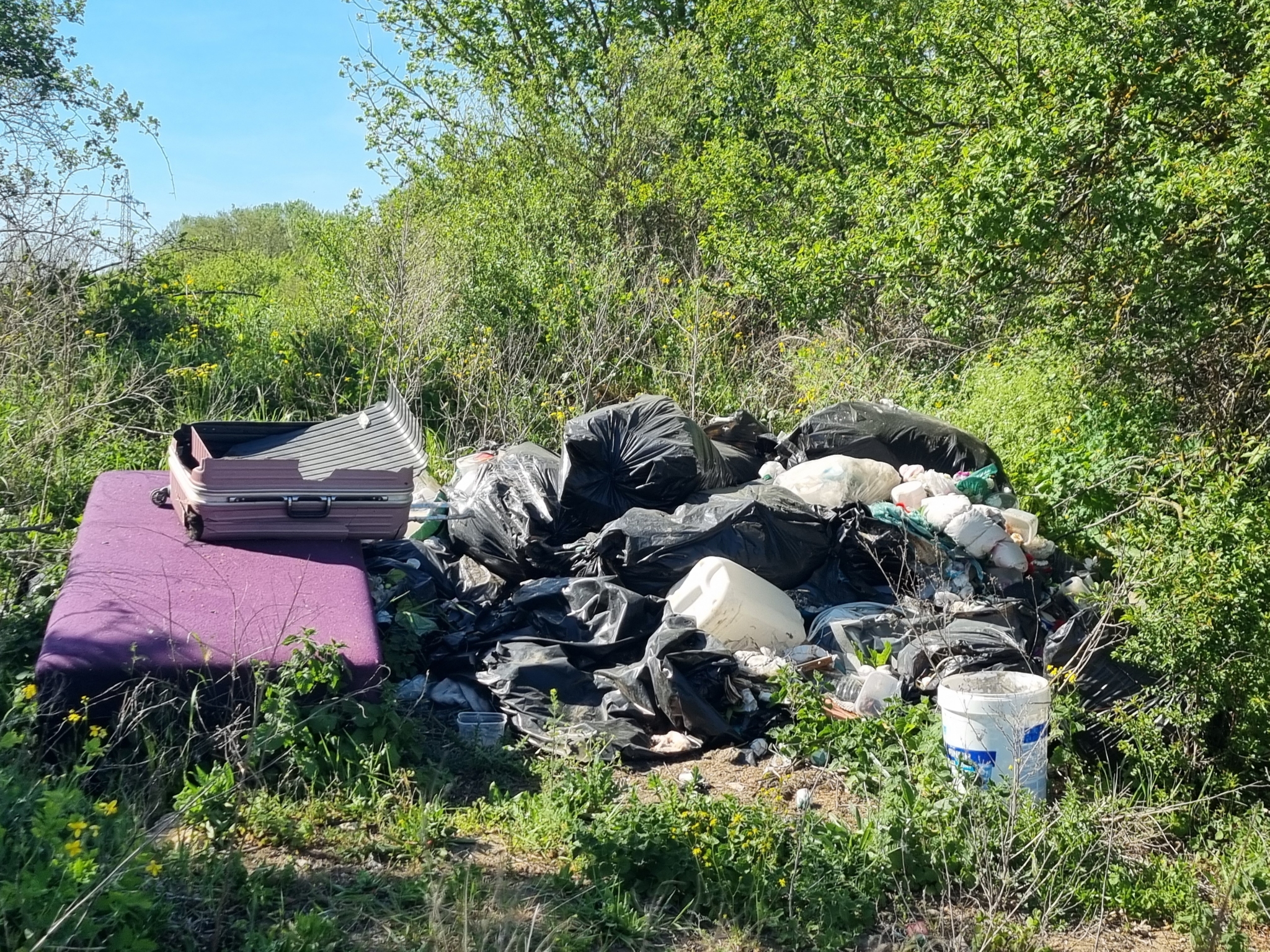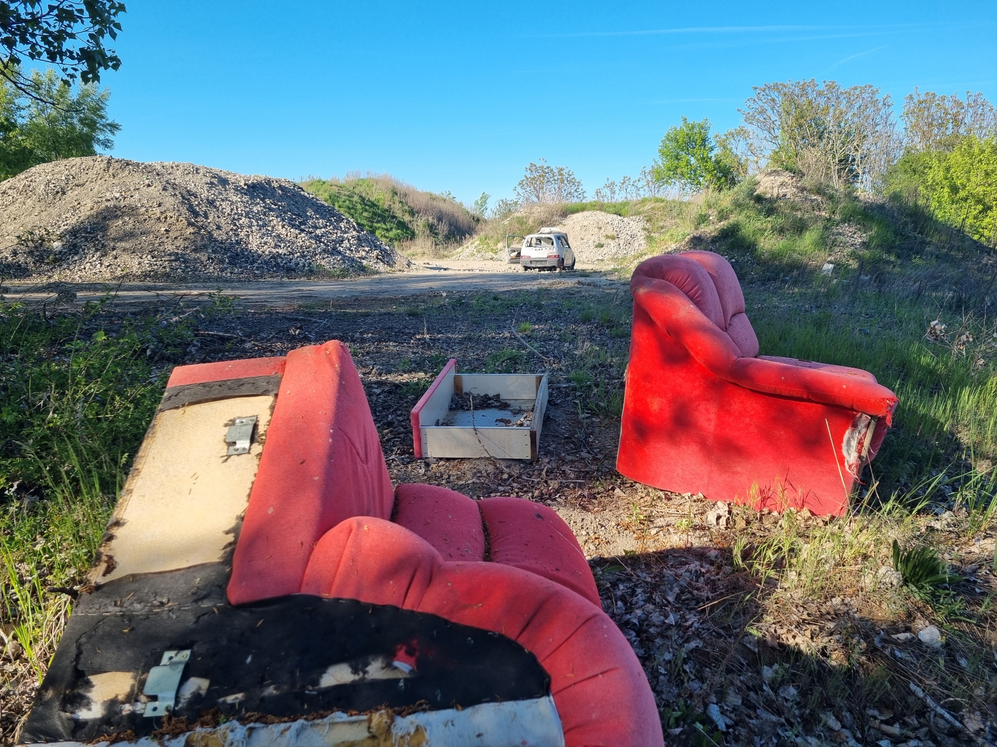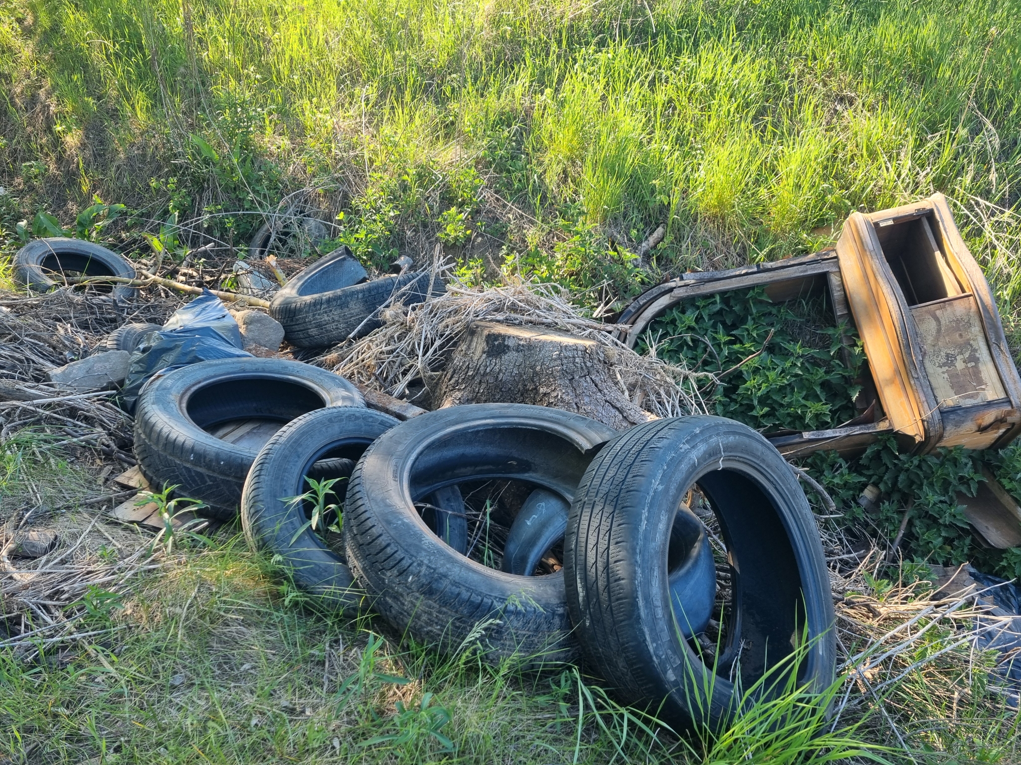 XVI.kerület Mátyásföldön, közel a Naplás tóhoz séta közben nagyon sok illegálisan lerakott szemetet, veszélyes hulladékot (gépkocsi gumik, hűtőszekrény, autó roncs stb) találtunk. Sajnos földúton megközelíthető, de a főútról nem látszik.