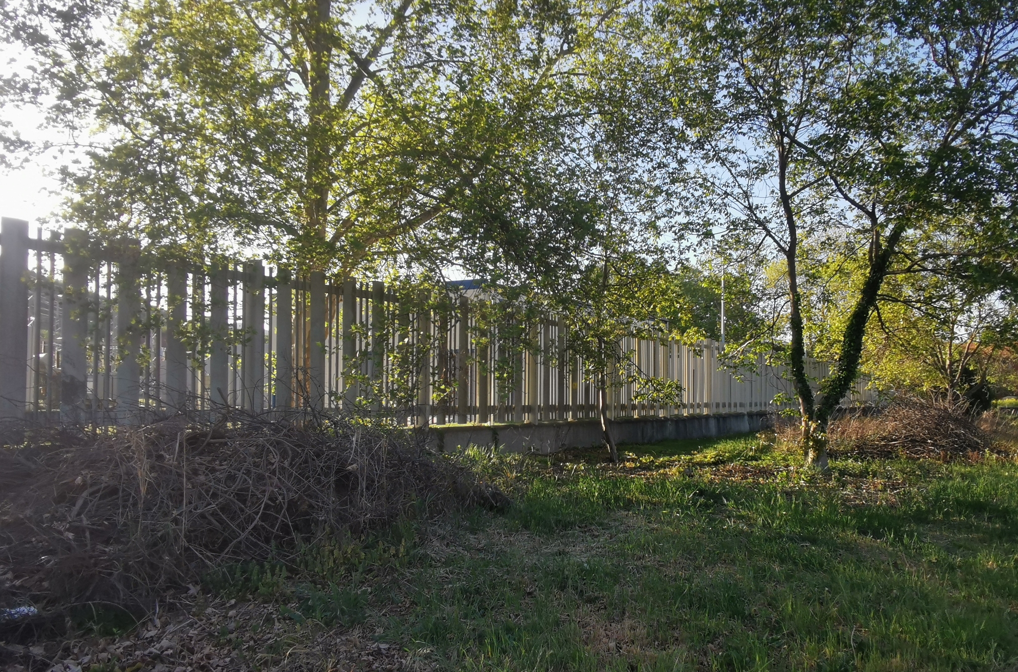 Budapesten, Békásmegyeren az ELMÜ-állomás kerítése és a Dózsa György út közötti füves részen két nagy kupac zöldhulladék (száraz ágak, gallyak) található.