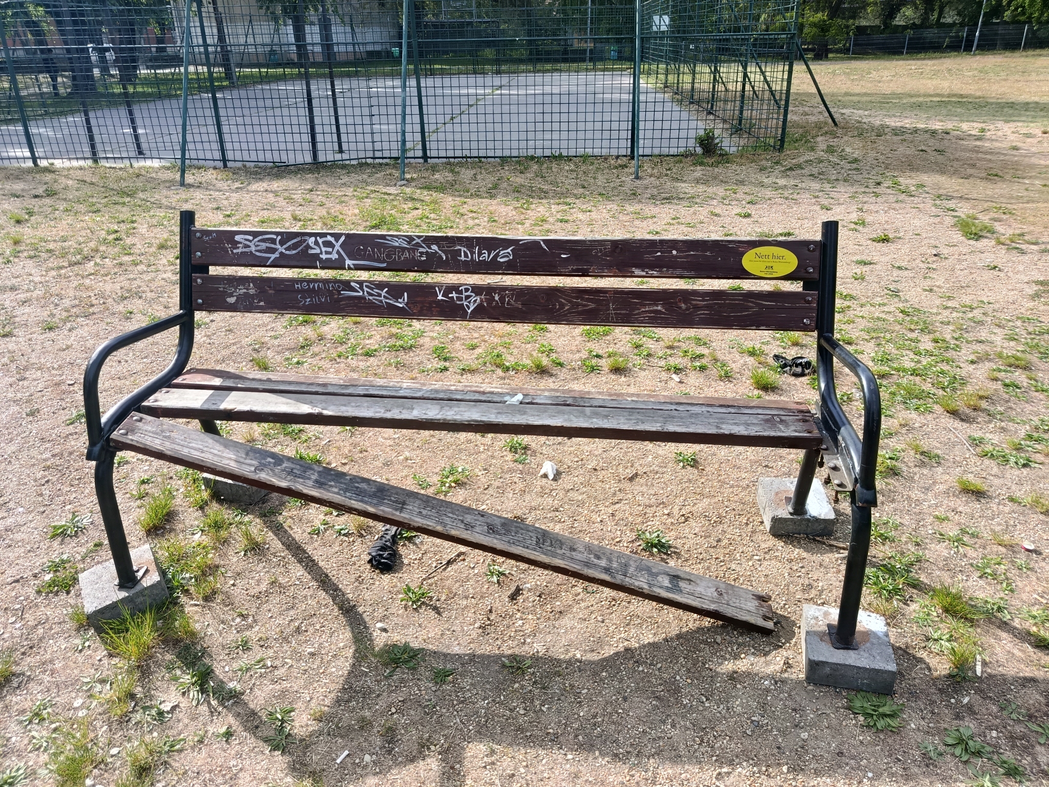 Egy megrongált pad! Megkérném az illetékest hogy gondoskodjon a probléma megoldásáról! Előre is köszönöm!