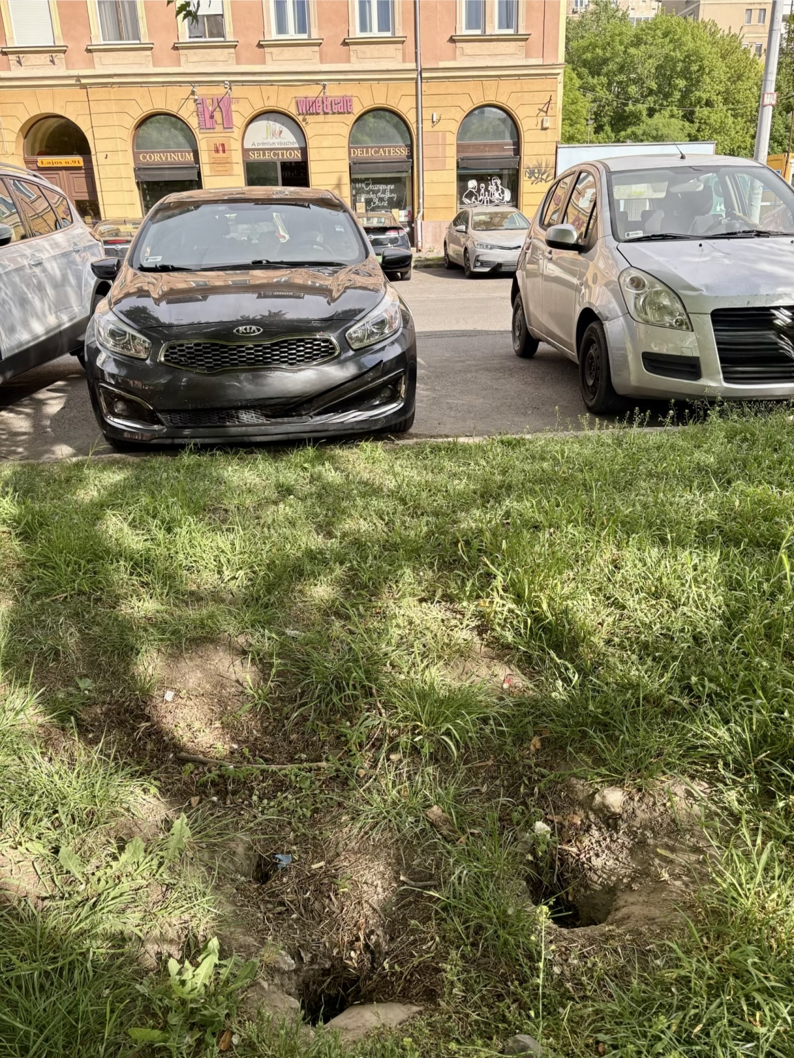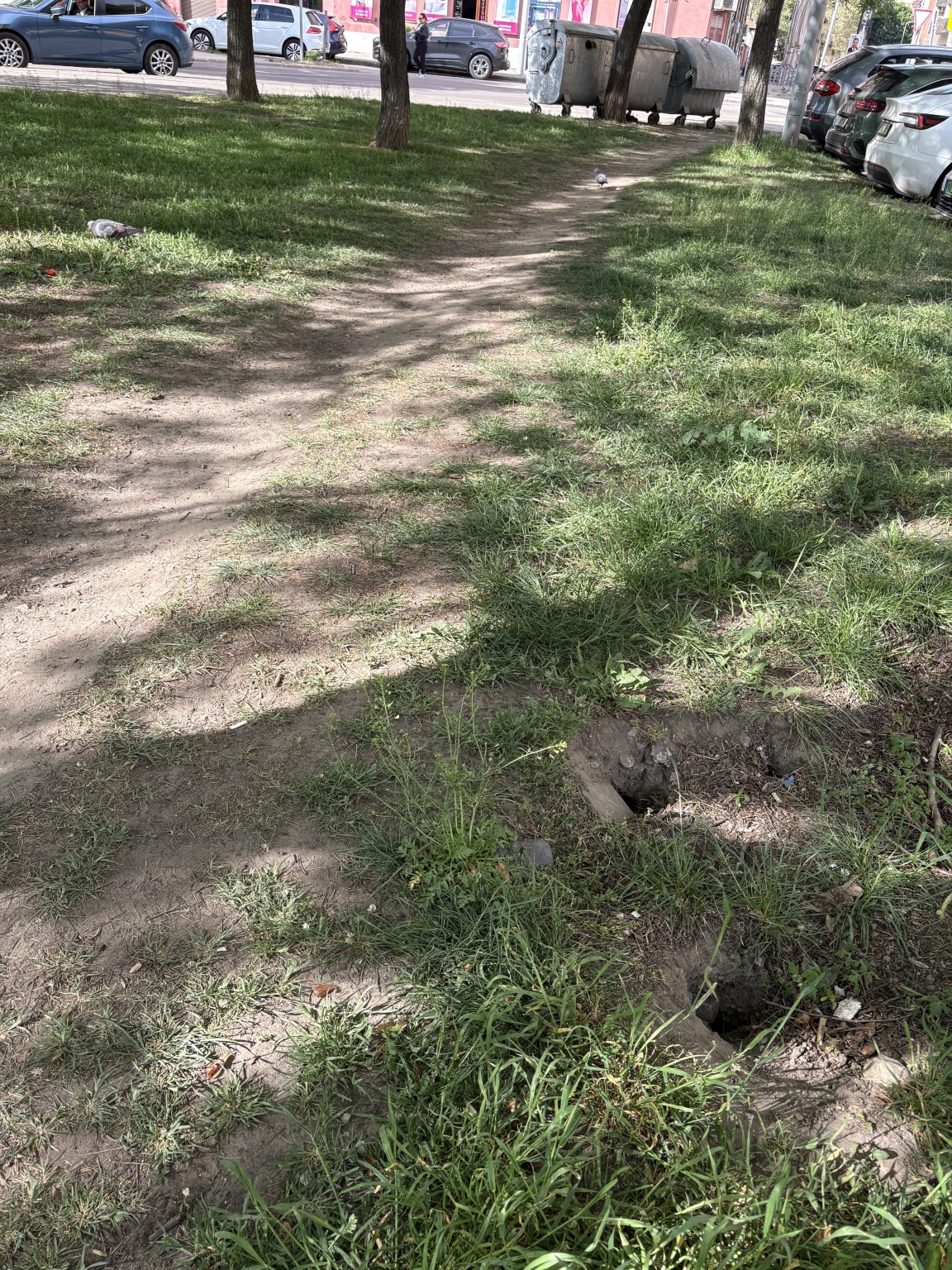 Mélyebb lyukak vannak ( 3db ) a zöld, füves területen a Nagyszombat utcai buszmegálló mögötti kis parkban. ( ahol kettéválik a főút Pacsirtamező/ Lajos utca/. Ha belecsúszik valakinek lába, akár még törést is szenvedhet, de kisgyereknek simán belefér a lába. Nem tudom, milyen mély lehet, de kérném az illetékeseket, tömítsék el, földdel, hogy fű, kis virág még nőhessen rajta. Köszönöm a munkátok ! Ildikó
