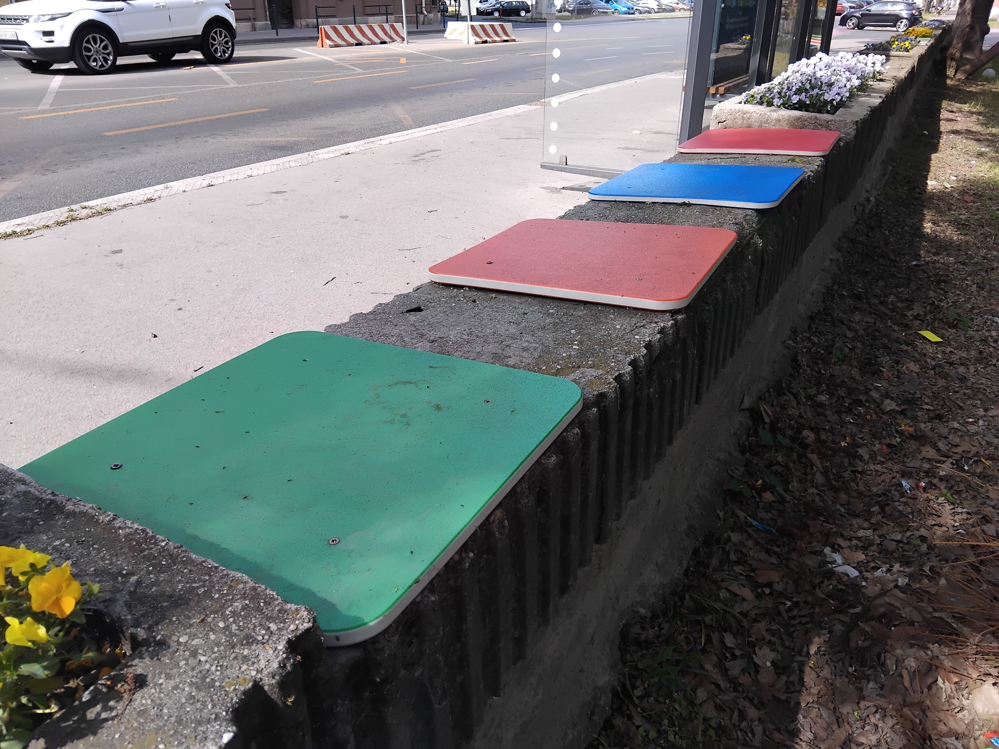 A Kápolna téri trolivégállomás, valamint busz és trolimegálló utasvárója mellett a kőfalat barátságos, jól kinéző, praktikus ülőfelületekkel látták el.