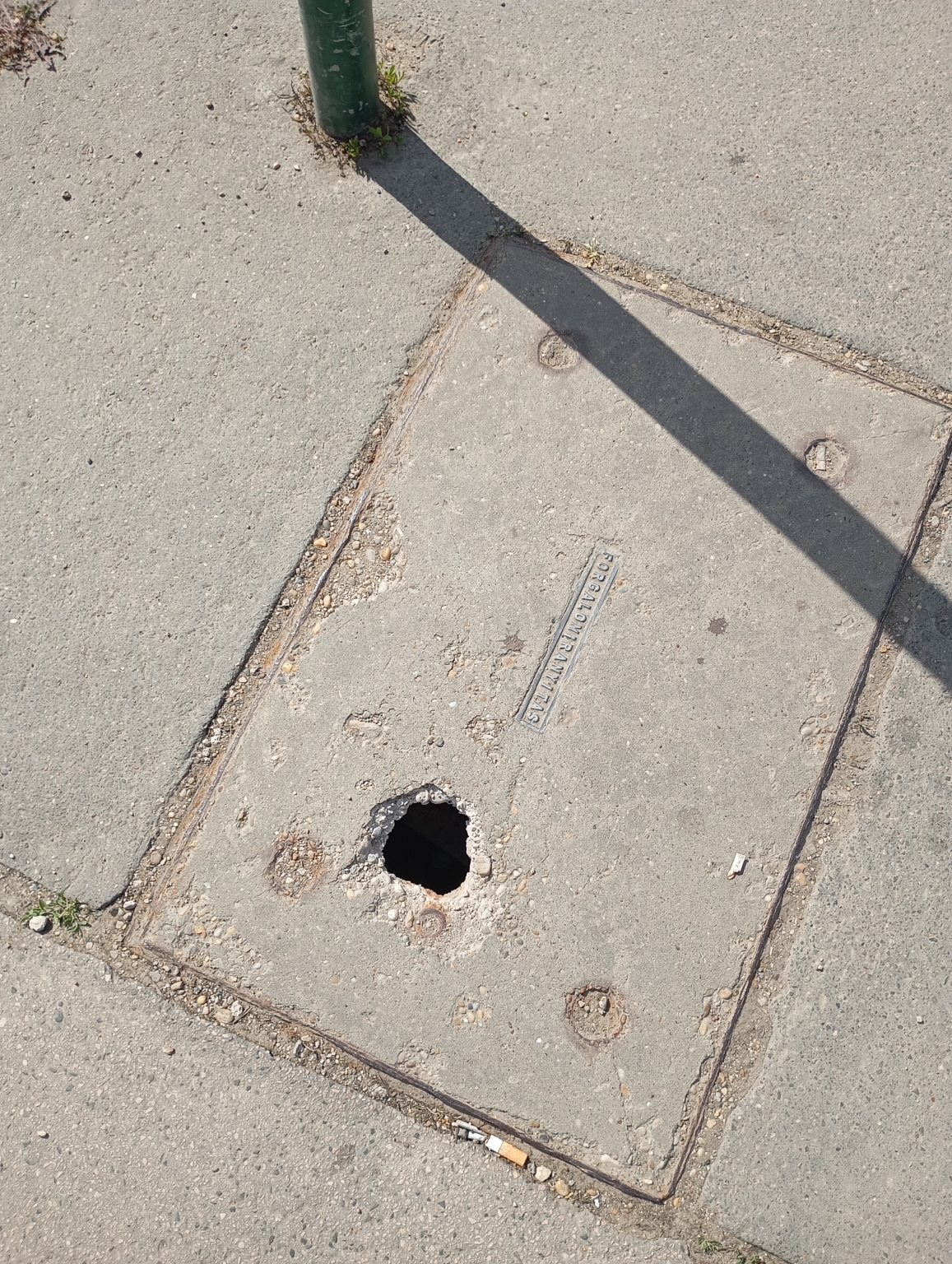 Beszakadt járda , talán lefedett csatorna
