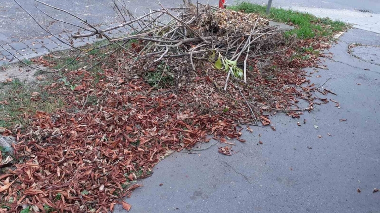 Zöldhulladék kupac az utca sarkán (2025.10.30 óta nem oldódott meg)