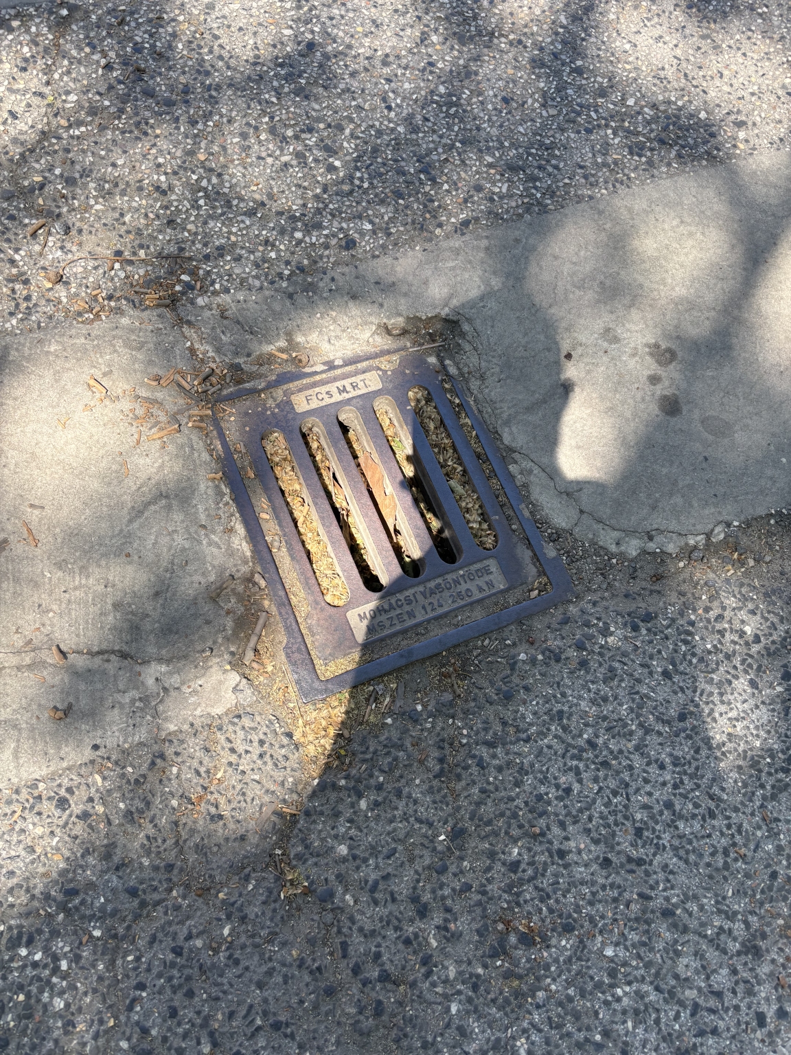 A XIX. kerület Guttenberg körút és Nádasdy utca sarkán a piac előtt levő vízelvezető tele van zöld hulladékkal. Nagyobb eső esetén biztos állni fog a víz itt.