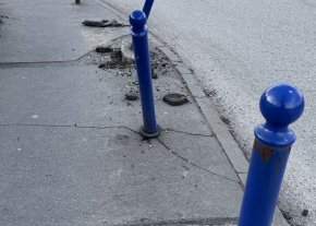 Az Óbudai Nagy László Általános Iskolával szemközt. Kérjük a törött beton lapkövek pótlását, a vízelvezető rendszer tisztítását, a hibás rácsok javítását a botlásveszély megszüntetése érdekében!