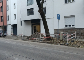 Balesetveszélyes járdaszakasz a gyökerek által felnyomott burkolat miatt. Kérjük javítását. Köszönjük!