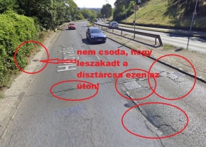 Ipacsfa utcai buszmegálló aszfaltja a terhelések miatt megsűlyedt. itt áll meg a 194, 198, és 36-os buszok.