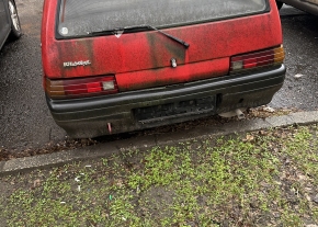Lassan egy éve mozdulatlan Jaguar. Foglalja a parkolót. Első rendszám hiányzik. Gyűlik a szemét is az autó mellett.