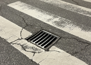 Ahogy a képen is látható, a szökőkút vize nem tud hova elfolyni, ezért a járdán áll a pocsolya.