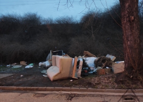 Egy nagy kupac lerakott szemét van a Zalán utcánál (Horvát gimnázium sarkánál)