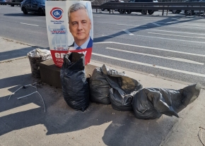 Újpalotán, a Vásárcsarnoknál található két szemetesedény. Ezek amúgy is folyamatosan tele vannak, a hétvégéi ürítések elmaradása miatt pedig vasárnapra kifolyik a szemét.