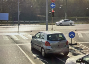 Hibásan elhelyezett útszűkületet előjelző tábla