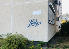 Pozsonyi utca –Vágóhíd utca: A Vágóhíd utca táblája hiányzik, a többi össze van firkálva.
