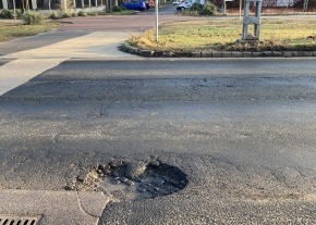 A Körvasút sor Nefelejcs utca sarkán van egy jókora kátyú. Elég régóta ott van és egyre mélyül és növekszik. Kérem az illetékeseket, hogy foltozzák be.