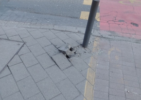 Törött járdaszegély és serült járda