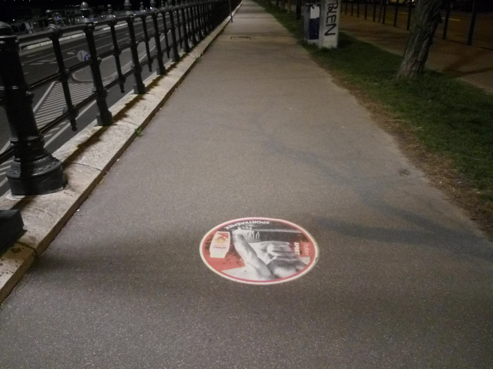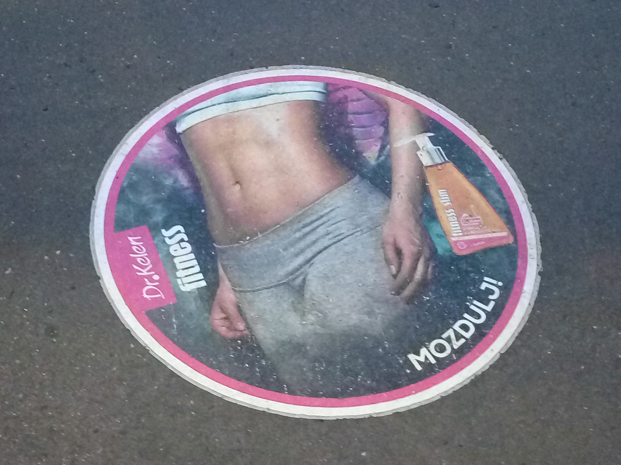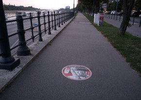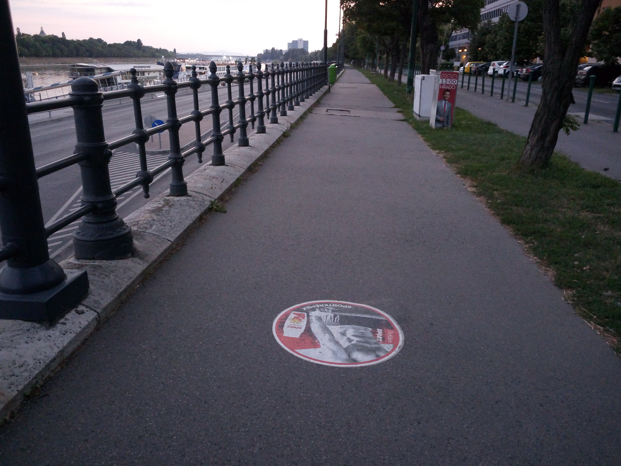 Pofátlan reklámok az Újpesti rakpart járdáján