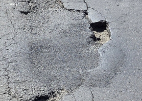 A Petőfi híd pesti hídfőjénél, a déli oldalon, a villamos megálló mellett található dilatációval párhuzamosan kátyú van.