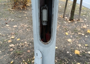 Kábelek szabadon a Vérmező út torkolatánál, a tér felőli lámpánál.