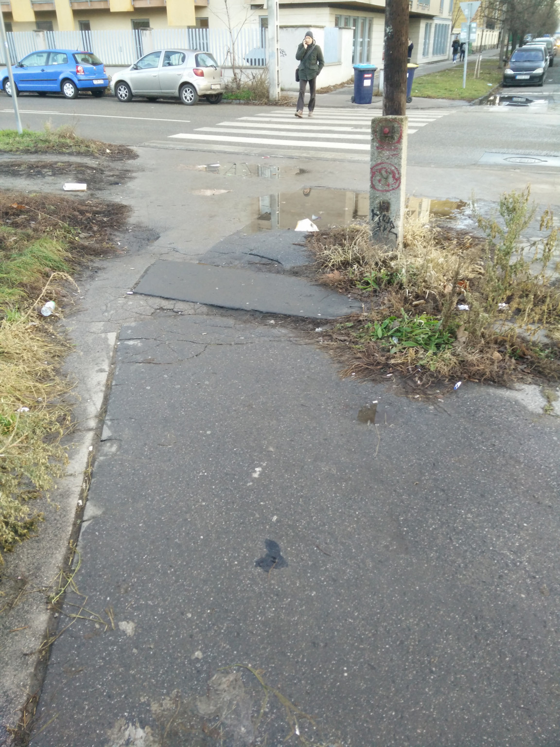 Kátyús, balesetveszélyes járda, el is estem az egyikben. A világítás sem jó az átjáróban, illetve a Francia út felől nincs gyalogos átkelő.