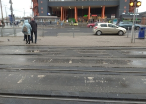 Tönkrement az csatornafedő, nagy darab bitumen hiányzik belőle, másik nagy darab mozog.