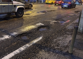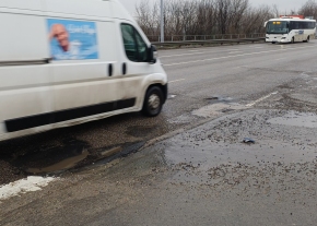 Van egy mély kátyú az út közepén.
