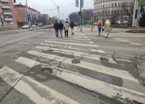 A Fehérvári úton a Dombóvári utcánál lévő villamosmegálló mellett kátyú keletkezett.