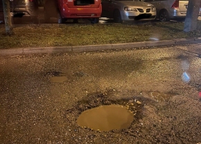 A burkolat beszakadásnál a balesetveszély elhárítása érdekében jelölőbakot helyeztünk ki. A burkolati hibát javítottuk.